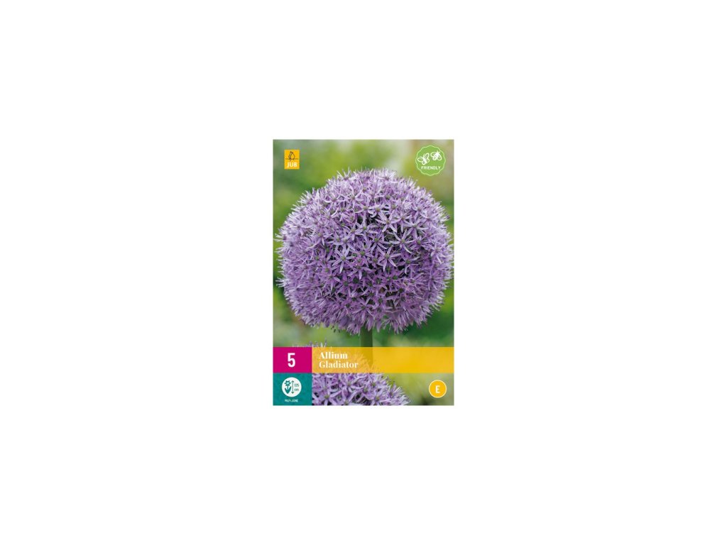 Obrovské tmavě lila květy allium Gladiator měří v průměru více než 20 cm a stojí na silných, rovných stoncích. Jedna z nejznámějších a nejvýraznějších okrasných cibulí. Gladiátory se nejlépe vyjímají mezi trvalkami, ale také mezi nízko rostoucími keři a křovinami. Vhodné pro naturalizaci. Toto allium láká v době květu motýly a včely.