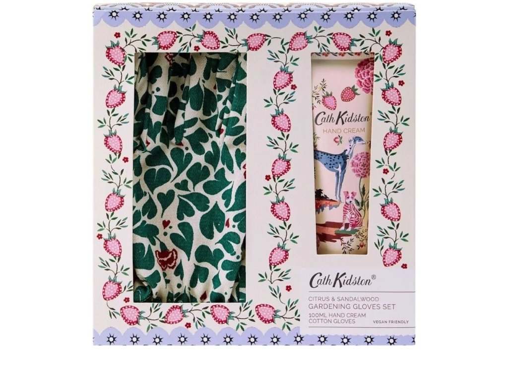 Okouzlující dárková sada se zahradnickými rukavicemi a výživným krémem na ruce s vůní citrusů a santalového dřeva. Krém je obohacen bambuckým máslem a vitamínem C.