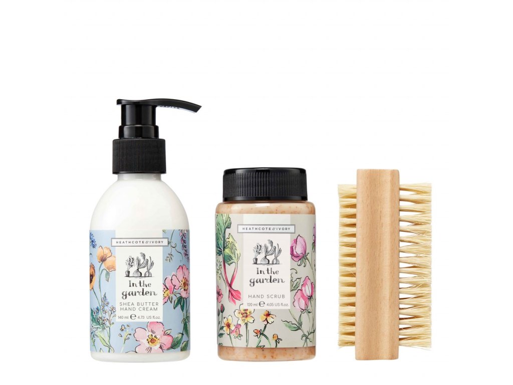 Nádherná dárková sada s květinovými motivy. Skvělá pro péči ruce namáhané prací na zahradě, odstraní odumřelou kůží, hlínu a další nečistoty.